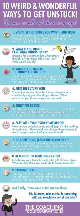 The Coaching Tools Company created this great infographic on different ways to get unstuck.