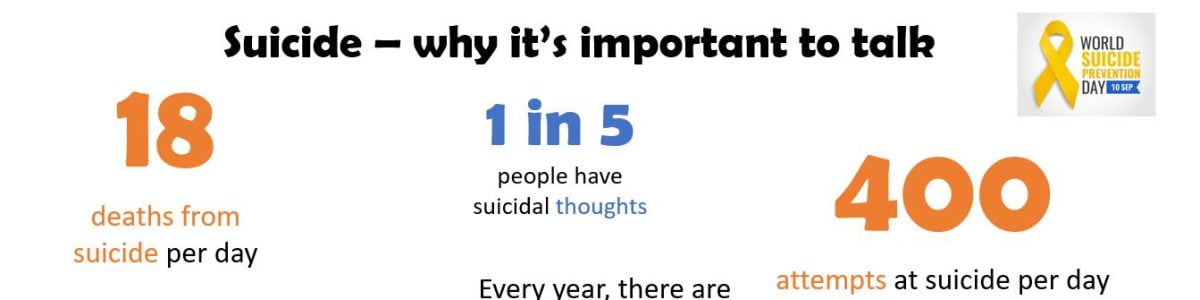 Saturday 10th September is World Suicide Prevention Day calling for ‘creating hope through action’. As a Mental Fitness Coach, I spend time focussing on people’s positive mind, but I also need to know how to manage the conversation or situations when someone is very stuck in a negative mindset, and may even be feeling suicidal.